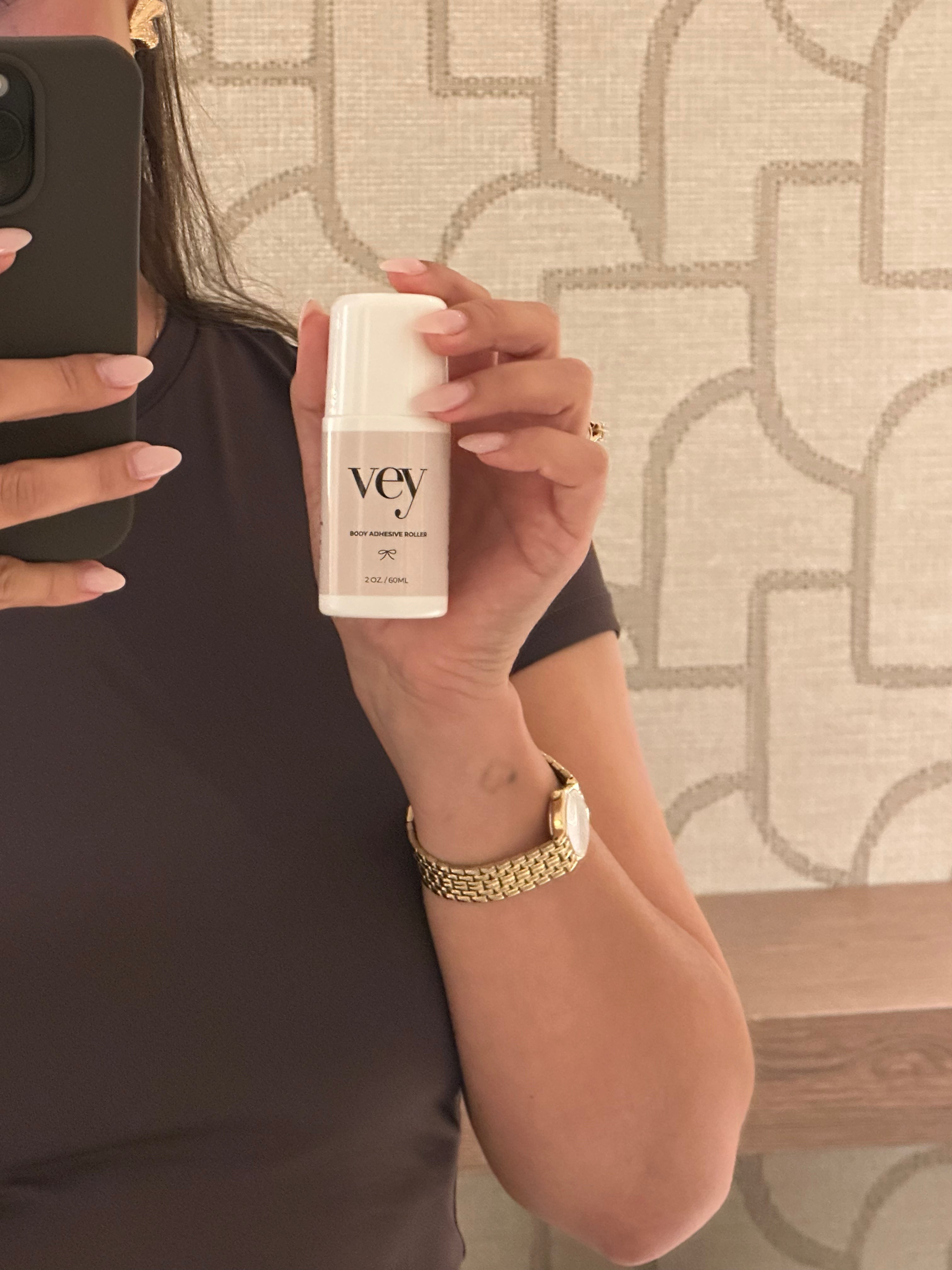 De vey Body Adhesive Roller voorkomt afzakken, verschuiven en openvallende halslijnen.
